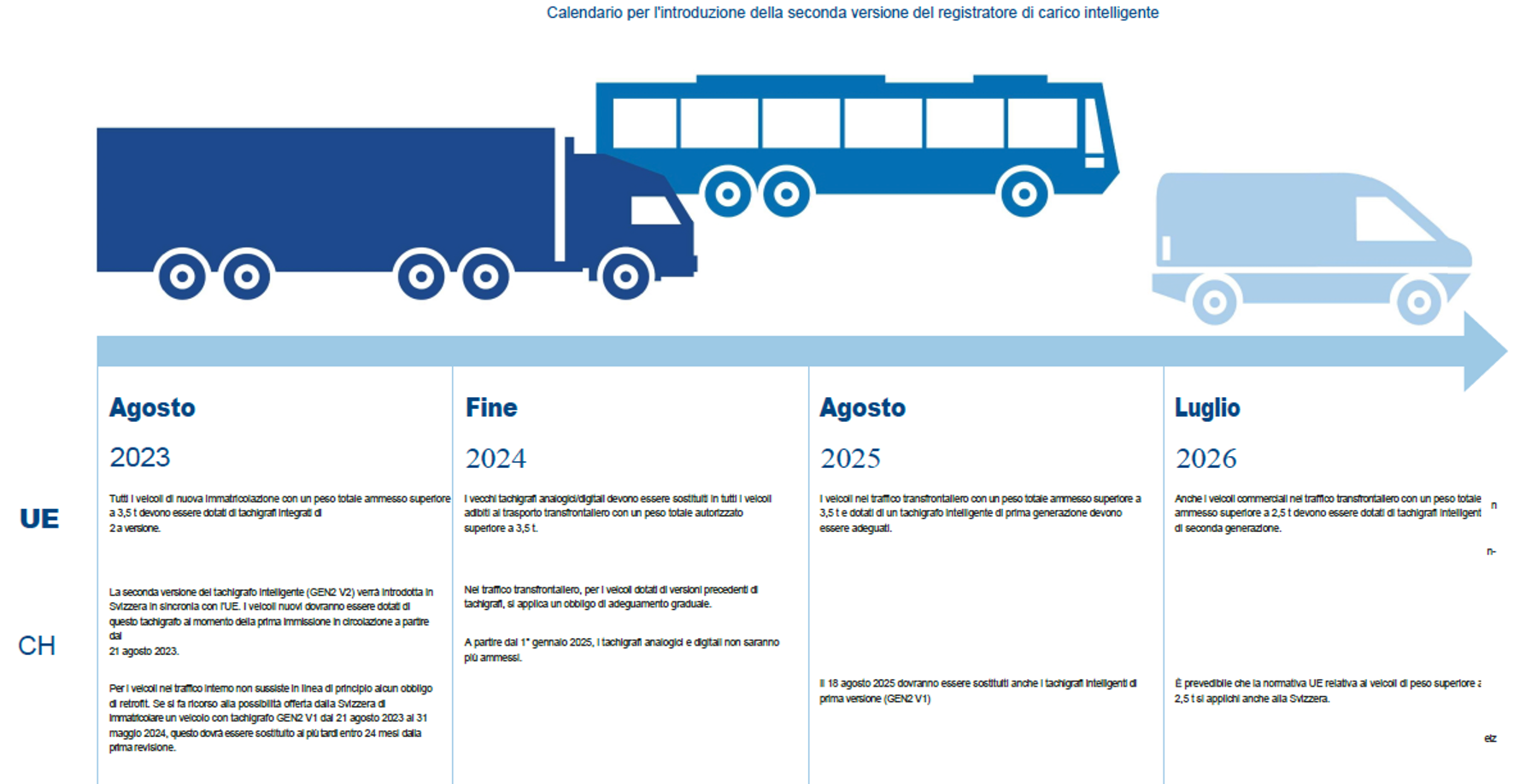Si prevede che la normativa UE sui veicoli di peso superiore a 2,5 t si applicherà anche in Svizzera.